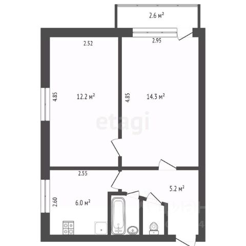 Застеклённая лоджия 2,8 кв.м.