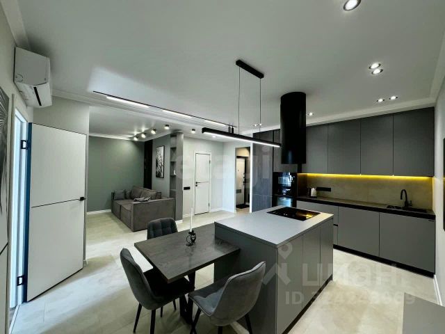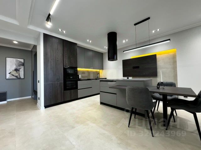 По всей квартире натяжные теневые парящие потолки со светодиодной подсветкой.