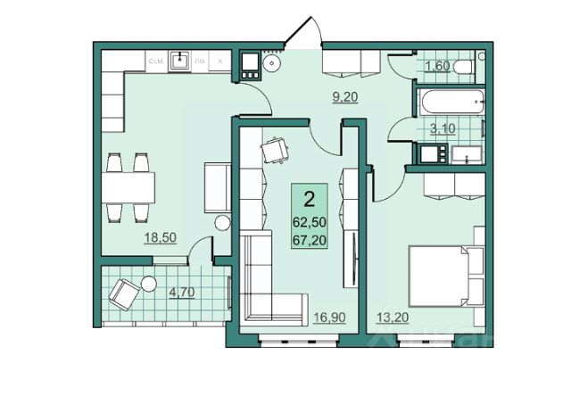 - две комнаты 16 кв.м и 8 кв.м