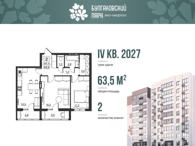 2-комнатные квартиры в жилом комплексе Булгаковский паркЖК «Булгаковский парк»