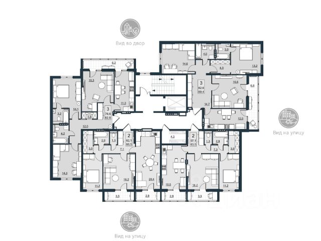 • ✅ Минимальная площадь: 57,1 м²