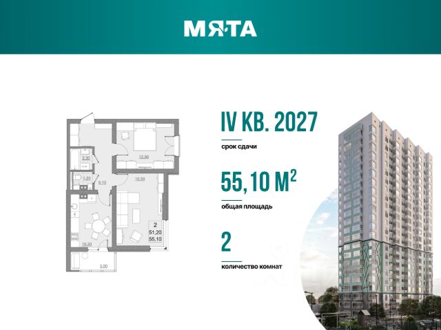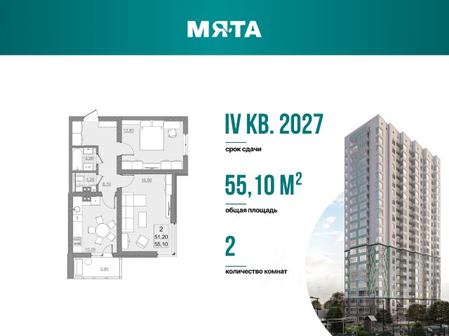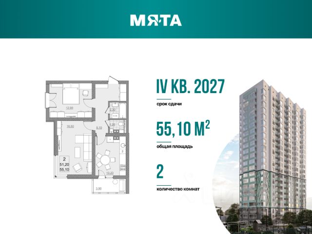 Живите свежо и стильно - последний дом в квартале Мята, 1 среди жилых комплексов! Отличный вариант для тех, кто ценит пространство и любит его организовывать. Квартира с просторной гостиной 16,5 м2 идеально зонируется на рабочую и зону для отдыха, а благодаря угловому остеклению в комнате всегда будет большое количество света. В спальне 12,9 м2 можно удобно разместить всю необходимую мебель и системы хранения. А чтобы сэкономить место - в прихожей предусмотрена специальная ниша для шкафа, куда можно будет убрать всю верхнюю одежду и обувь. Кухня с выходом на остекленную лоджию - отличное место для завтраков в теплое время или выращивания своего маленького огорода. Свободная планировка. По желанию можно сделать перепланировку, подстроив квартиру под себя (требуется согласование с БТИ). Квартира продается базово без отделки. Вы можете заказать отделку от застройщика: white box (выполнены все черновые работы) или чистовая отделка. Стоимость отделки можно включить в ипотеку! Подъезды выполнены по дизайн-проекту. Современная отделка, бесшумные скоростные лифты. Предусмотрена установка всей необходимой навигации в подъезде. На первом этаже расположены велосипедная и колясочная, доступ к которой имеют только жители дома, а также гостевой холл с мягкой зоной ожидания. Предусмотрено огороженная территория, установка умной домофонии (видеовызовы, история вызовов, вход без ключа, удаленный доступ из приложения). Современные детские площадки с безопасным покрытием во дворе. Своя управляющая компания! Охватываем все возможные направления работ по уходу за территорией и домом: уборка в местах общего пользования, ухаживание за растениями и зелеными зонами, обслуживание лифтового оборудования и т.д. Собственное приложение для отправки данных по счетчикам и формирование заявок о необходимых работах по дому. Следите за выполнением! Сроки сдачи дома - IV квартал 2027 года. Квартал Мята расположен на первой линии бульвара Героев Отечества. Жилой комплекс прекрасно подойдет для тех, кто любит активный образ жизни. Вечером на бульваре всегда кипит жизнь: прогулки, спортивные тренировки и т.д. Через дорогу находится школа Солярис, в 10-15 минутах Дворец Водных Видов Спорта и Протон Арена. Для спокойных прогулок и наслаждения природы рядом расположен пруд Семхоз. В 15 минутах для любителей вкусно поесть находится ресторан быстрого питания Вкусно и Точка, а в коммерческом помещении на первых этажах дома планируется открыться большой ресторан. Возможна покупка в ипотеку! Объект аккредитован во всех ведущих банках страны. Наш ипотечный брокер совершенно бесплатно подберет наиболее выгодную для вас ипотечную программу с комфортными ежемесячными платежами. Вы можете оформить сделку под ключ - мы поможем с оформлением всех документов, в течении всей сделки и до получения ключей ваш будет курировать личный менеджер, который ответит на любые ваши вопросы. Ждем вас в нашем офисе продаж!