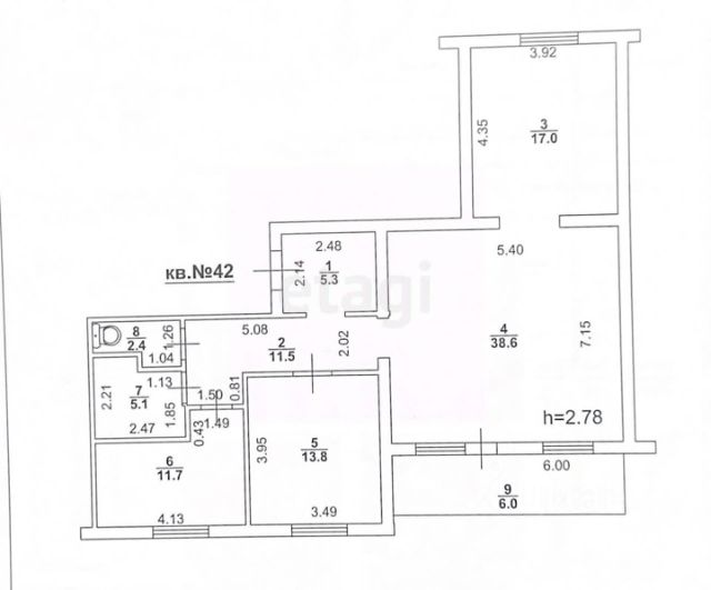 Высота потолка 2,74 м