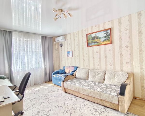 Продаётся спокойная,тёплая и уютная 1 комн.квартира.На 3 этаже,во 2 подъезде . С балконом ,с очень качественным .остекленением пласт.окна на кухне и в зале.На кухне,в ванной винтажная плитка. Кондиционер.Туалет совмещённый.Вода хол.и гор.Счетчики на газ и воду.Батареи(новые).Дополнительный бойлер для воды..В доме сухой,чистый подвал,и квартире принадлежит большая кладовка в подвале ,с замком,где разместиться велосипеды,коляски,шины для машин,заготовки и т.д. Придомовая территория закрытая,при ней есть дет.площадка,и паркинг для машин,места есть.,двор чистый,,летом очень зелено и уютно...Подъезды очень чистые,и удобные. Рядом в 100м....школы,муз.школа,плав..бассейн,дворцы культуры,с кружками и секциями,магазины,аптеки в 200м. взросл.поликлинника,и в 450м..дет.поликлинника,дет.сады Ост.троллейбуса и автобусов в 200м..Улица не шумная,не основная.