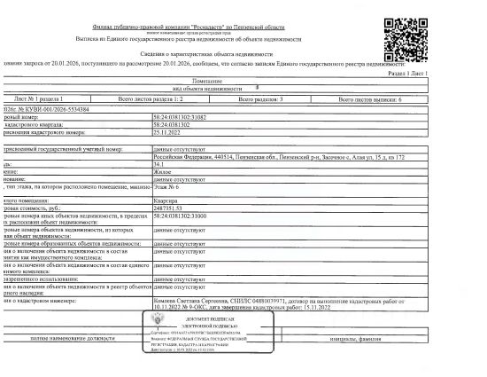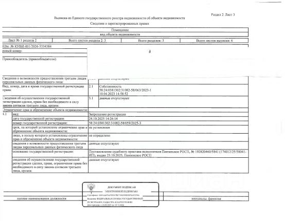 Данные получены с сайта ГИС Торги. Жилое помещение (квартира 1-но комнатная площадью 34,1 кв.м., кад. 58:24:0381302:31082, находящееся в пределах объекта недвижимости с кад. 58:24:0381302:31000, принадлежащее должнику Вагаеву А.С. По месту нахождения объекта зарегистрированные граждане не значатся. Сведениями о размере задолженности по коммунальным услугам и взносам на капитальный ремонт, а также о фактическом состоянии объекта недвижимости, организатор торгов не располагает. Ключи, техническая документация и фотографии объекта отсутствуют у организатора торгов.