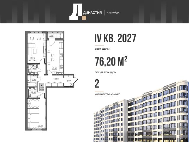 2-комнатная квартира в клубном доме "Династия"!