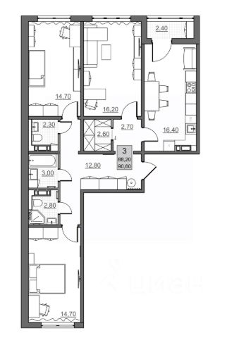 Свободная планировка. По желанию можно сделать перепланировку, подстроив квартиру под себя (требуется согласование с БТИ).
