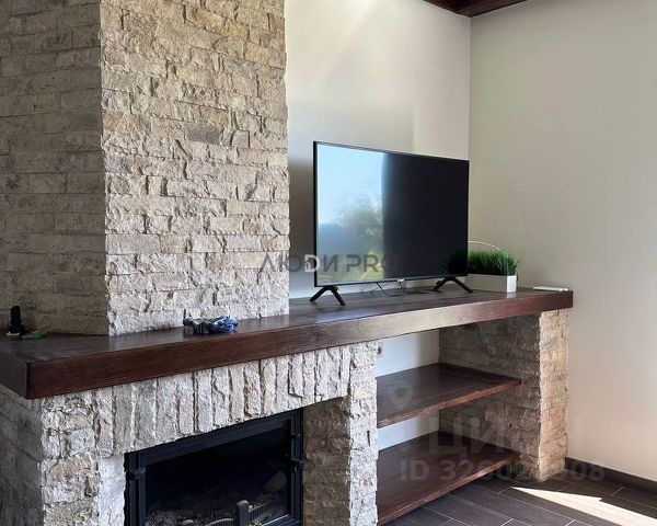 Просторный холл и кухня-гостиная с камином.