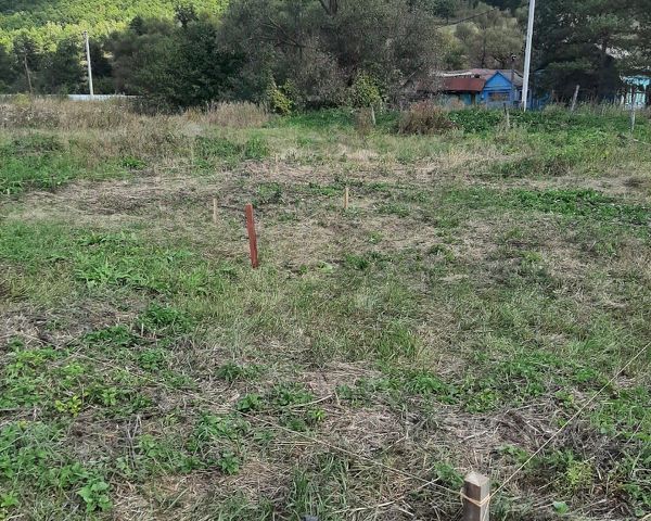 Участок ровной прямоугольной формы площадью около 10 соток: посажена вишня, крыжовник. Перед домом есть палисадник.