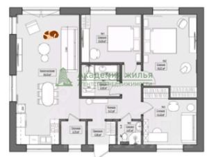 Планировка дома: 3 изолированных комнаты (22,7 - 21,1 - 25,4 кв.м), большая кухня-гостинная 62,6 кв.м, два сан.узла, прихожая 26,3 кв.м, гардеробная, котельная 2,6 кв.м