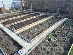 Участок выровнен, завезена плодородная почва. По периметру участка установлены столбы