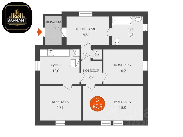 Агентство недвижимости "ВАРИАНТ" предлагает к покупке отдельный жилой дом со всеми удобствами и ПВХ окнами в районе Собачьего хутора. О ДОМЕ: Щитовой (финский). Обложен кирпичом. Тёплый. 1965 года постройки. Кровля шифер. Высокий фундамент. 67,5 кв.м. (с верандой 71,4 кв.м.). Документы оформлены. Окна ПВХ. Газовый котёл с насосом для циркуляции. Центральное водоснабжение (есть не на каждой соседней улице!). Канализация септик и сливная яма. Новая электропроводка. Крепкие деревянные полы. Высота потолков 2,6 м. На потолке утеплитель. Счётчики на всё. ПЛАНИРОВКА: 3 изолированные комнаты (как в квартирах улучшенной планировки): 15,8; 10,5 и 10,2 кв.м. Просторная кухня 10 кв.м. Коридор 3,8 кв.м. Тамбур 1,1 кв.м. Встроенный шкаф 0,8 кв.м. Новый большой совмещённый санузел 6,2 кв.м. с раковиной и местом для стиральной машины. Отапливаемая прихожая 8,8 кв.м. Веранда 3,9 кв.м. ОБ УЧАСТКЕ: 4,9 сотки. ИЖС. Отмежёван. Правильной прямоугольной формы. 2-этажная летняя кухня. Погреб. Сарай. Летний душ. Уличный туалет. 2 водопроводных вывода для полива. Яблоня, вишня, смородина (чёрная и красная), шиповник, малина, клубника и др. Место под гараж. ЛОКАЦИЯ: На машине: 1) с ул. Орджоникидзе, в районе дома 12, поворачиваем на ул. Челюскинцев, прямо 230 метров, второй поворот налево, 80 метров. Первый поворот направо, на ул. Малую Революционную, до дома 16 870 метров. Налево 50 метров; 2) с ул. Большой Революционной через пер. Макаренко 840 метров. Пешком с ул. Фестивальной, от дома 23, через овраг 500 метров 6 минут. ДАННЫЕ ПО СДЕЛКЕ: 1 взрослый собственник. Более 5 лет в собственности, что более безопасно для покупки и даёт возможность указать полную стоимость в договоре купли-продажи и полностью получить возврат подоходного налога при покупке. Альтернативная продажа. Возможен обмен на 2-комнатную квартиру на КПТ (1-2 эт.). ПРЕИМУЩЕСТВА: Щитовой дом, обложенный кирпичом, имеет ряд преимуществ: 1. Энергоэффективность. Кирпич обладает отличными теплоизоляционными свойствами, поэтому дом сохраняет тепло зимой и прохладу летом, что снижает затраты на отопление. 2. Долговечность. Кирпичный слой защищает деревянный каркас от воздействия влаги, ультрафиолетовых лучей и других неблагоприятных факторов окружающей среды. Благодаря этому срок службы значительно увеличивается. 3. Эстетика. Обложенный кирпичом щитовой дом выглядит солидно и привлекательно. Удобная инфраструктура. Пешком: • до школ 15, 3, гимназии 1, детских садов Дубравушка, Челночок, магазинов Пятёрочка, Магнит, аптек и остановок Улица Строителей, Магазин, Саратовская 10-15 минут. Так как участок угловой, тоже есть свои плюсы: + удобный доступ с разных сторон; + меньше соседей и потенциальных конфликтных ситуаций и неудобств; + больше естественного света и свежего воздуха. Рядом река Хопёр (14 минут пешком). Подходит всем, кто хочет жить в своём частном доме. При этом рядом район КПТ.