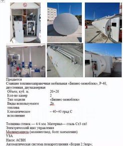 Станция топливозаправочная мобильная (МТЗС, "Бизнес-моноблок", Р-40, двустенная, двухкамерная) для заправки колесной техники топливом. Станция оснащена двумя колонками выдачи топлива, с напорной гидравликой, производительностью 80...