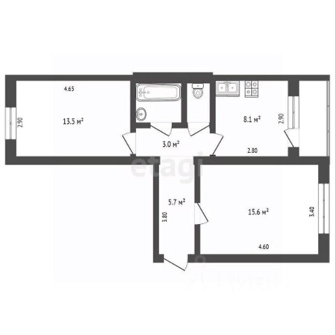 Размер имеет значение! БОЛЬШАЯ общая ПЛОЩАДЬ 63,9 (!!!) кв.м.