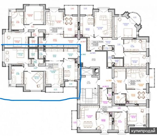 Высокие потолки (выше, чем в квартирах на других этажах за счет того, что застройщик оставлял квартиры на шестом этаже "для себя")