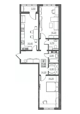 Гостиная 16,6 м2 легко зонируется - вы можете как спланировать полноценную гостиную, так и превратить ее в рабочий кабинет или студию, где никто не отвлекает и ничто не мешает сосредоточиться.