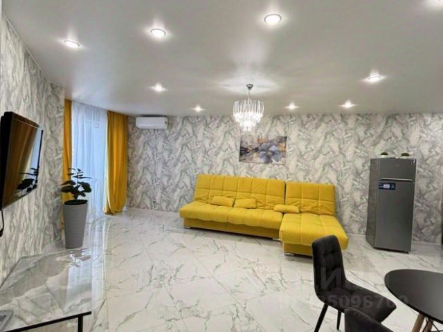 Кухня-гостиная оборудована встроенной мебелью и бытовой техникой (электрическая варочная панель, электрический духовой шкаф, холодильник, кондиционер), которая остаётся новому владельцу. Из неё выход на лоджию на 10-метровую лоджию, которая является "изюминкой" квартиры, за счёт своего витражного остекления в пол.