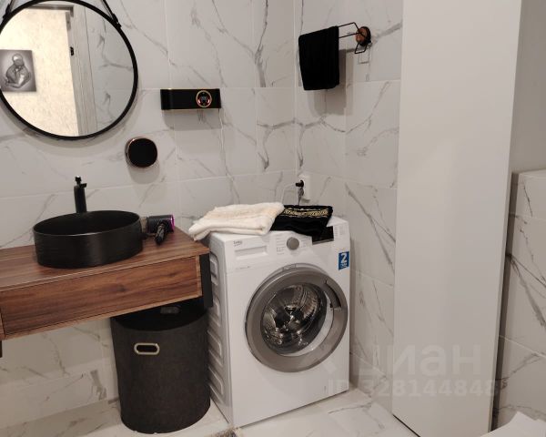 Ванная комната с новой сантехникой, плитка на полу.