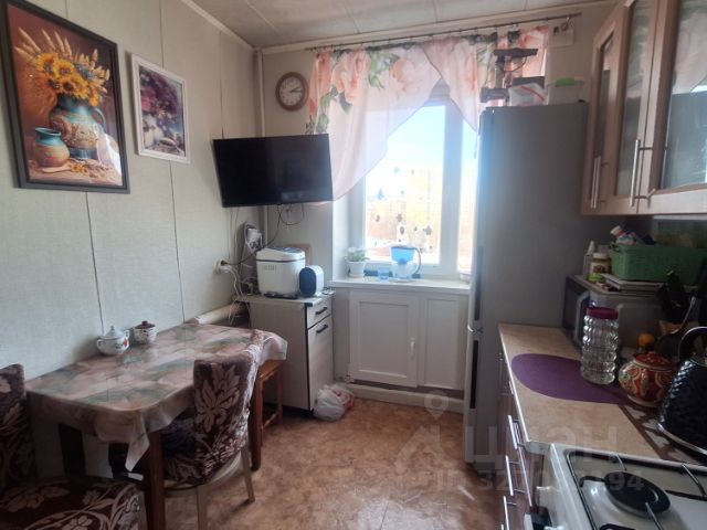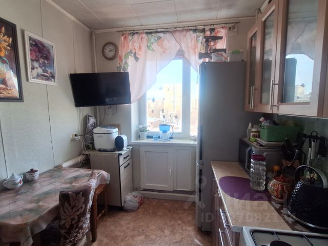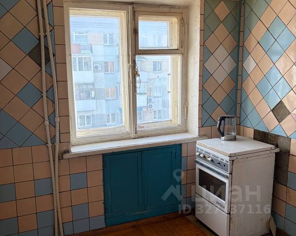 Кухня 6 кв.м. правильной формы оснащена мебелью и бытовой техникой, которая остаётся новому владельцу.