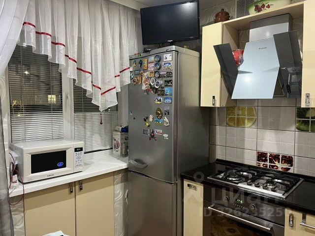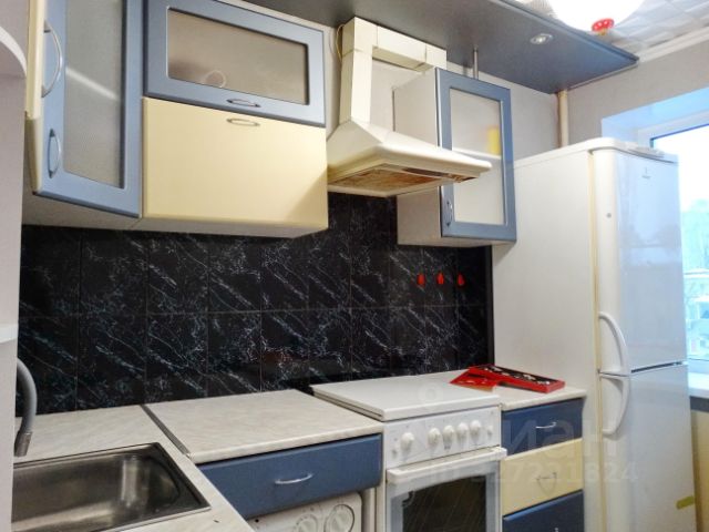 Кухня 6 кв.м. правильной формы оснащена мебелью и бытовой техникой, которая остаётся новому владельцу.