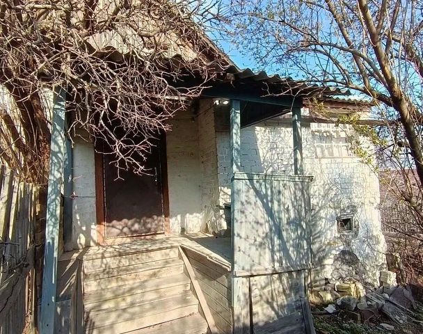 Кирпичный, толстые стены поэтому зимой тепло, а летом прохладно.
