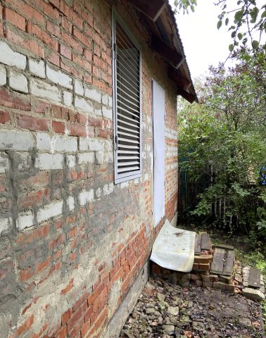 Дом деревянный с кирпичной пристройкой, одноэтажный. Но так как стоит на возвышении, с другой стороны выглядит как двухэтажный.Есть отдельная комната для хранения техники, садовых инструментов и прочих материалов. Жить можно все лето с поздней весны и до ранней осени. Три комнаты, кухня, есть веранда. В даче имеется газовый баллон, холодильник. На участке есть летний душ, туалет.