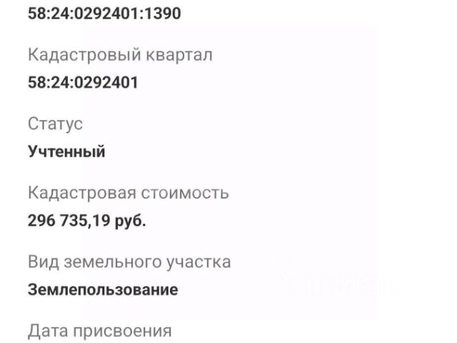 "Уникальный шанс! Участок 21 сотка в элитной курортной зоне на Сурском водохранилище, 70 км от Пензы. Ключевые преимущества: Лучшая локация: Граничит с территорией резиденции "Порт-А-Якс". Престижный, охраняемый район. Чистый воздух, лес, водохранилище в шаговой доступности. Инвестиционный потенциал: Идеально для постройки дома для отдыха или доходного гостевого дома. Прозрачная схема владения: Участок в долгосрочной аренде с законом закрепленным правом выкупа за 3% от кадастровой стоимости после постройки дома. Все документы в порядке. Инфраструктура: Рядом школа. Для кого: Для инвесторов, кто видит потенциал, и для тех, кто хочет построить "дом мечты" в самом красивом месте области. Мотивированная цена за право аренды с последующим выкупом. Подробный расчет инвестиционных затрат и окупаемости — по запросу. Серьезным покупателям — полный пакет документов и детальные консультации." Код пользователя: 195397 Номер в базе: 10950712