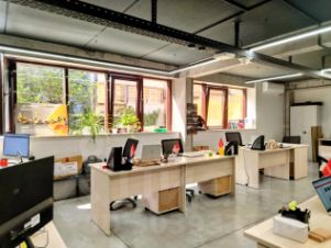 Есть офис со своей мини-кухней и санузлом.