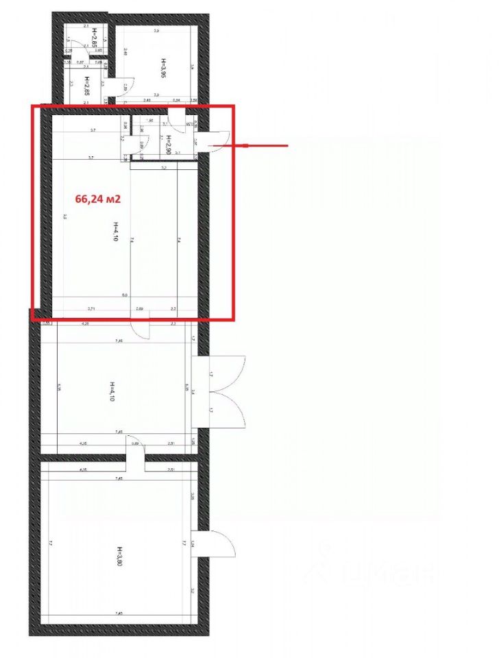 Высота потолков 4.10 м;