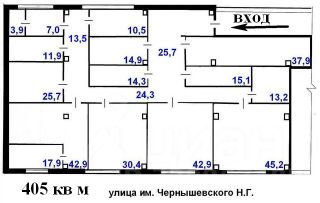 Предлагаемое помещение общей площадью 405 кв метров занимает крыло 2-го этажа здания и состоит из 14-ти кабинетов различной площади с высокими потолками более 3-х метров.