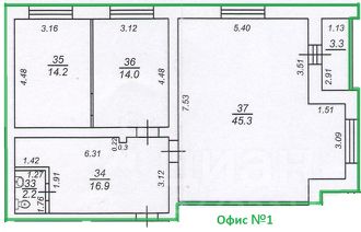 Площадь офиса 92,6 м² + лоджия 3,3 м².