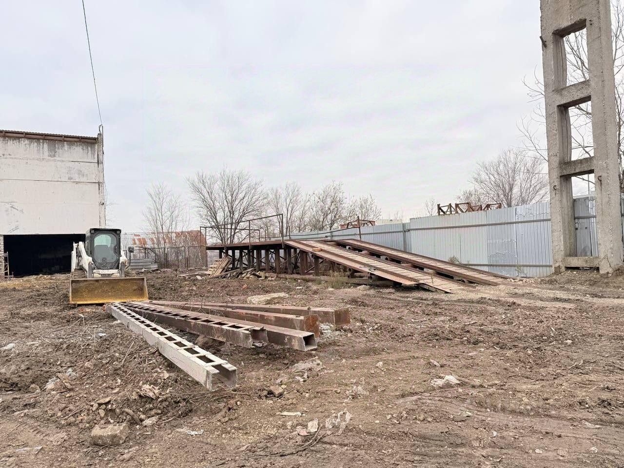 Большая эстакада для ремонта большегрузов рядом с помещением.