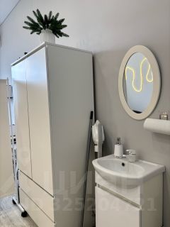 -Раковина в студии и санузел напротив.