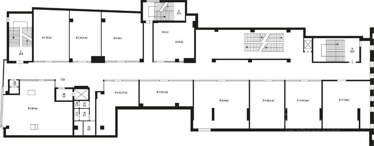 Площадь этажа - от 960 кв.м. до 1050 кв.м.