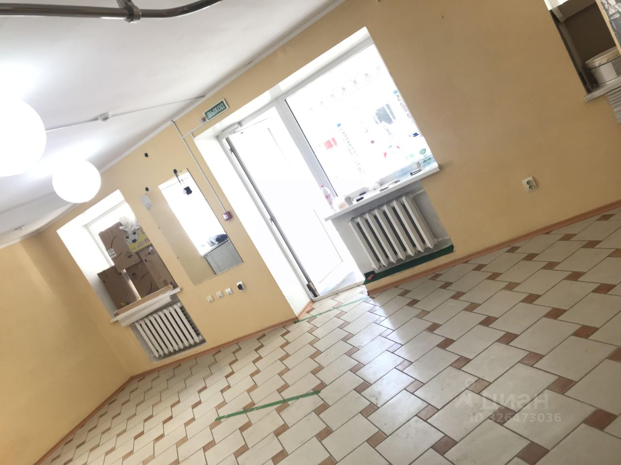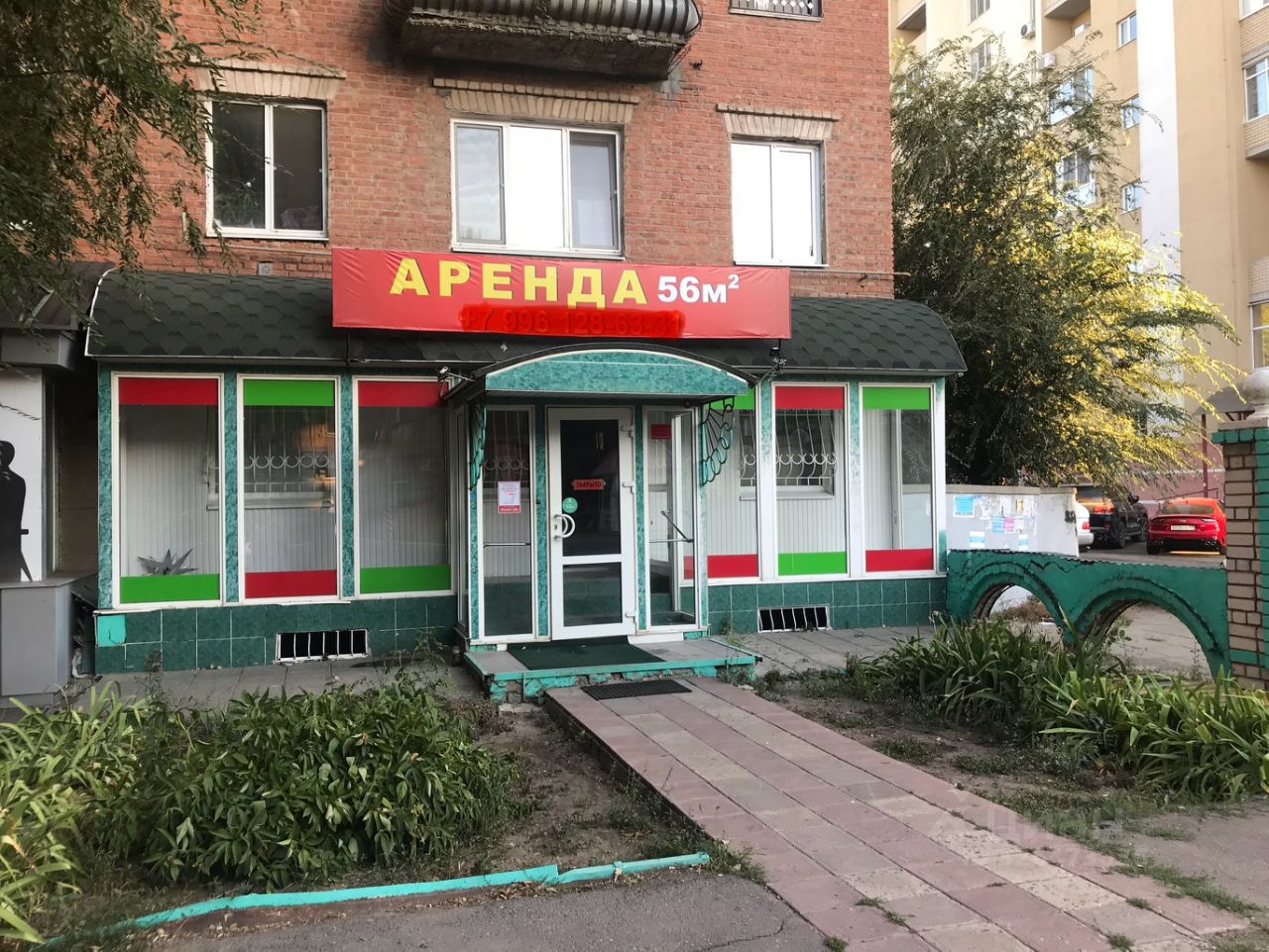 Общая - 55,6 кв/м. Большие витрины,