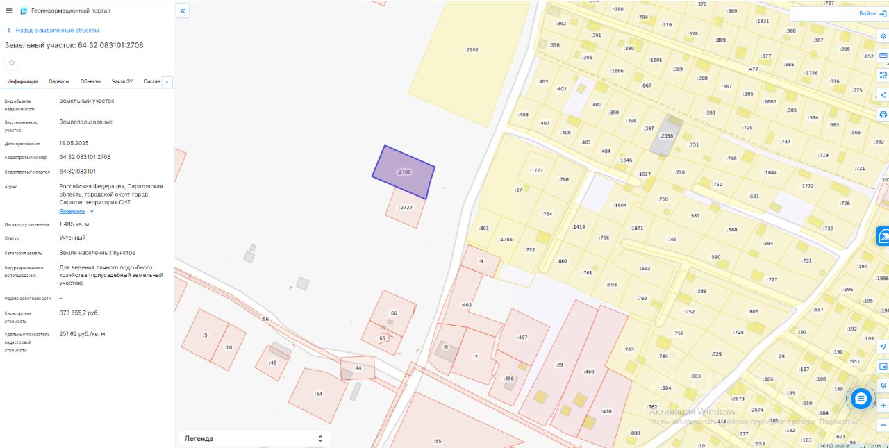 Земельный участок площадью 1485 кв. м с кадастровым номером 64:32:083101:2708, по адресу: муниципальное образование "Город Саратов", с. Широкий Буерак