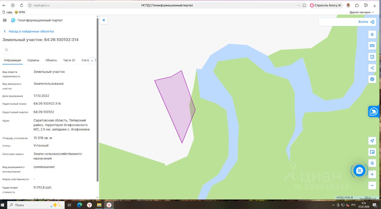 земельный участок из земель, государственная собственность на которые не разграничена, категория земель сельскохозяйственного назначения, вид разрешенного использования: сенокошение, с кадастровым номером 64:26:100102:314, общей площадью 15018 квадратных метров, расположенный по адресу: Саратовская область, Питерский район, территория Агафоновского МО, 2,5 км западнее с. Агафоновка.