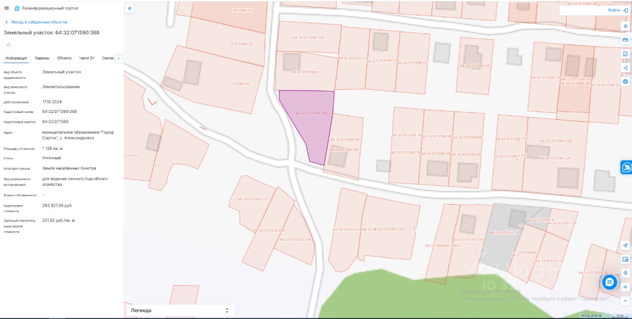 Земельный участок площадью 1128 кв. м с кадастровым номером 64:32:071590:368, по адресу: муниципальное образование "Город Саратов", с. Александровка