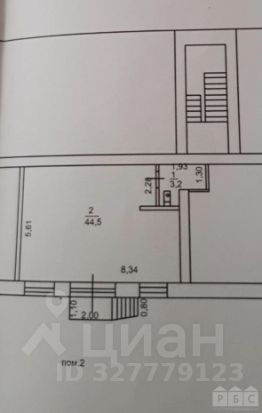 -планировка - торговый зал 44,5 кв.м.+ подсобное помещение 2 кв.м.+ сан/узел