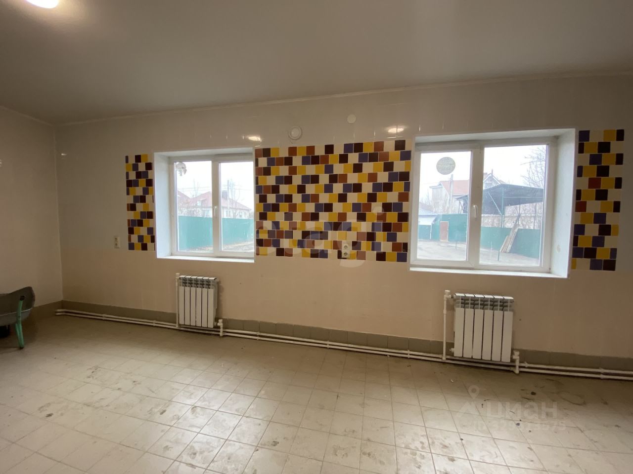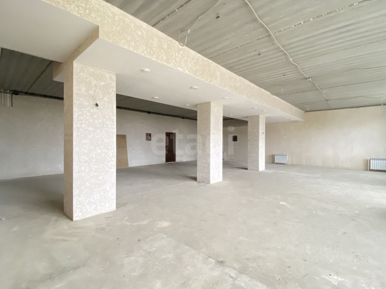 Общепит (кафе, фастфуд)- просторный вестибюль с колоннами для организации пространства посетителей и комната для кухни уже готова и отделана кафелем.