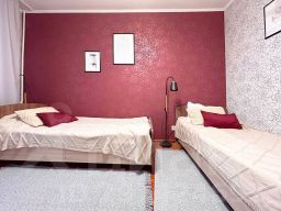 Гостям предлагаются трёхкомнатные апартаменты бизнес-класса с дизайнерским оформлением. Рядом с домом имеется парковка.