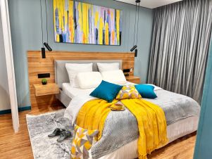 Просторные Апартаменты элит-класса порадуют Вас своим дизайном, комфортом, чашечкой ароматного кофе из кофемашины с поджаристыми тостами.