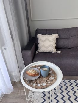 Сдается уютная и стильная квартира с шикарным видом на фонтан на бульваре героев Отечества в престижном жилом комплексе мкр Солнечный-2. В доме предусмотрено дистанционное заселение