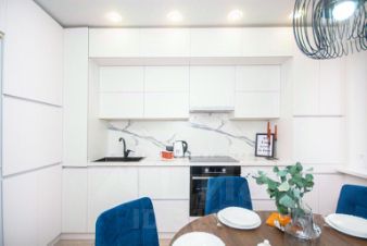 Кухня оснащена бытовой техникой, капсульной кофемашиной, посудой и приборами.