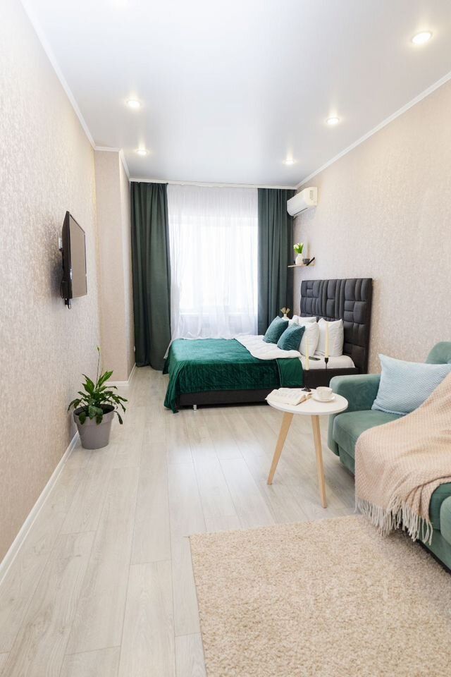 В квартире смогут разместиться до 3-х человек (диван + кровать)