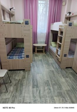 Наш хостел предлагает для проживания места в 4хмест. номере для проживания по суточно, как для женщин отдельные номера так и для мужчин. По цене от 600 - 700р. На этаже есть 3 санузла с душевыми. Есть общая кухня где вы можете приготовить, и покушать, для этого всё необходимое на кухне есть. Также есть комната отдыха где вы можете отдохнуть и посмотреть телевизор, В нашем хостеле есть вай фай, стиральная машина, фен, утюг