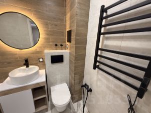 В квартире есть всё необходимое для комфортного проживания: современная мебель на кухне и в комнате, техника — холодильник, телевизор и стиральная машина. Санузел совмещённый, оборудован ванной. Также имеется балкон, где можно отдохнуть на свежем воздухе.