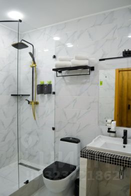 Гостям предоставляется: средства гигиены (шампунь, гель, мыло, зуб.набор, а также бальзам для волос, бритвенный набор по запросу гостя), полотенца большое, маленькое, полотенце для ног, тапочки, махровые халаты. Бутилированная вода, чай, сахар.