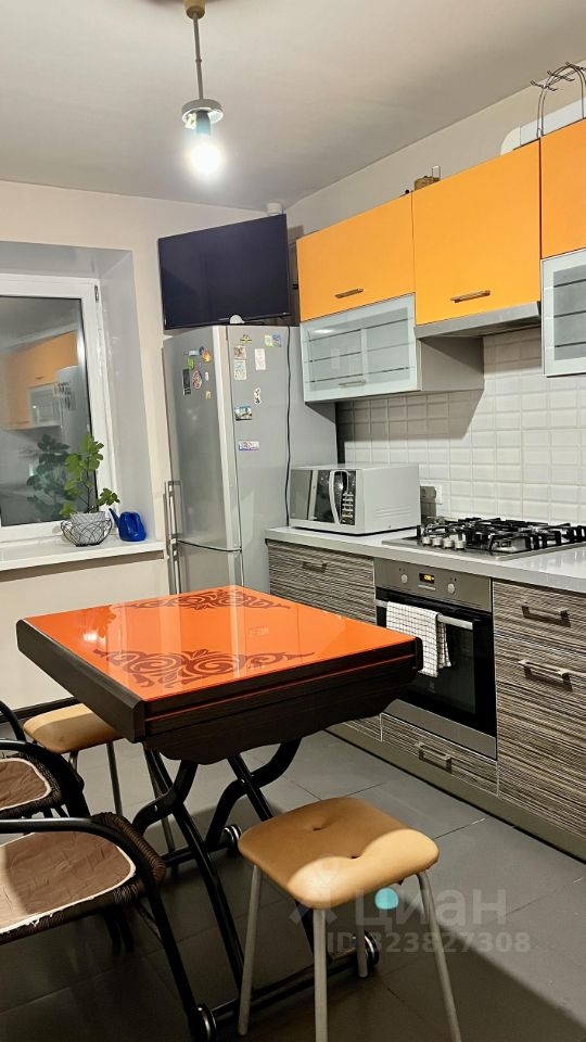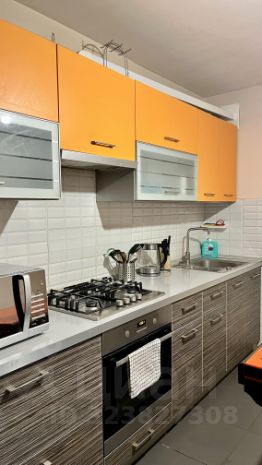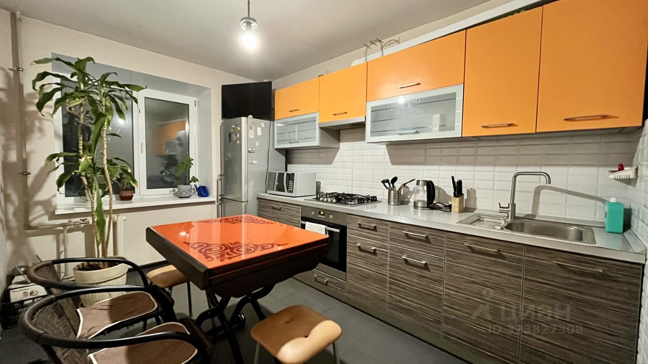 Имеется вся необходимая мебель (диван, шкафы, кухонный гарнитур, стол, стулья) и бытовая техника (холодильник, ТВ, стиральная машина, водонагреватель, СВЧ-печь, духовой шкаф, чайник).