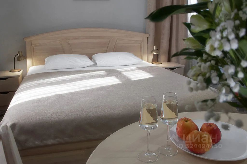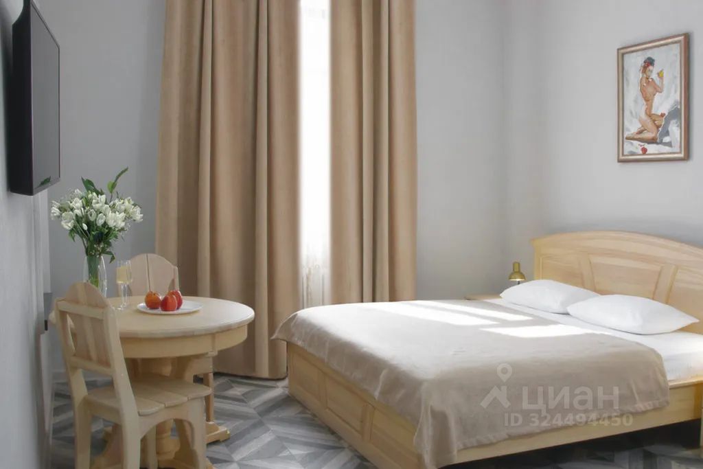 1 большая двуспальная кровать;Круглый стол и 2 стула;